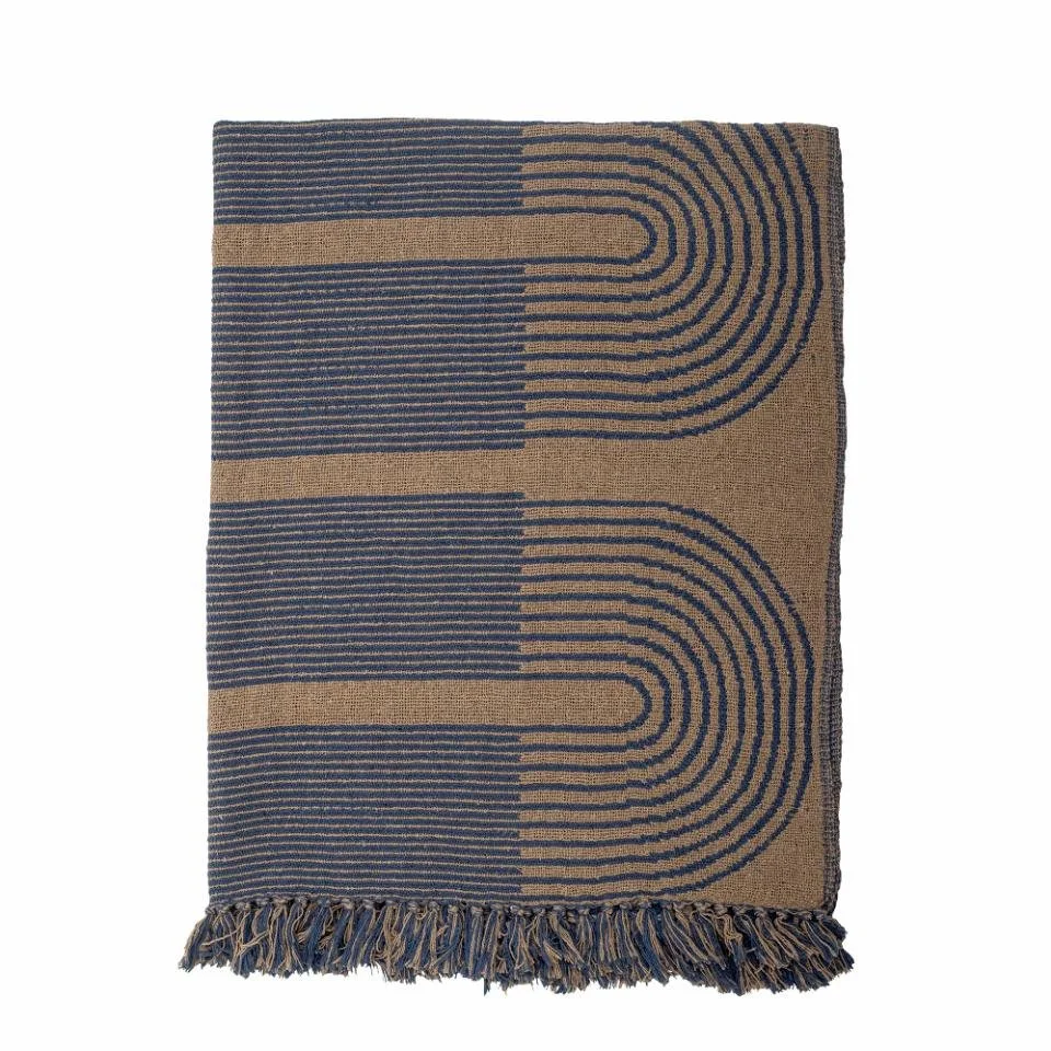 The Tiffanie Throw is made of cotton fabric in blue and beige shades. It is printed with a beautiful graphic pattern and has decorative fringed edges that create a cozy atmosphere in any room.