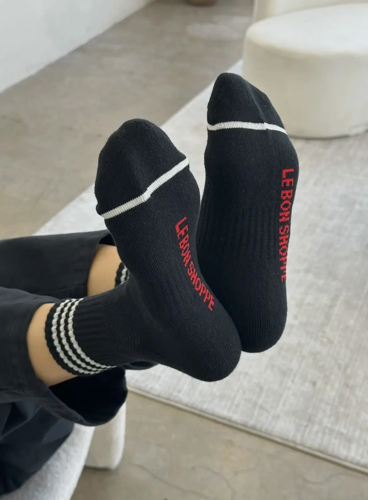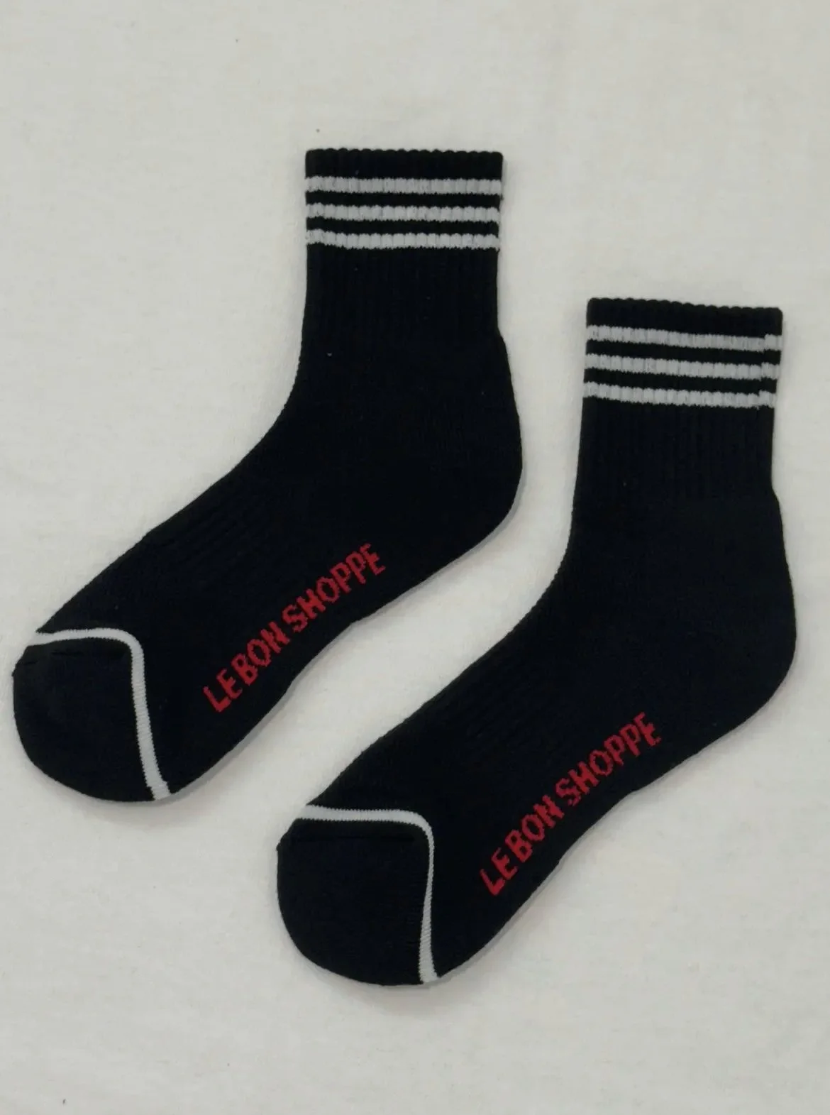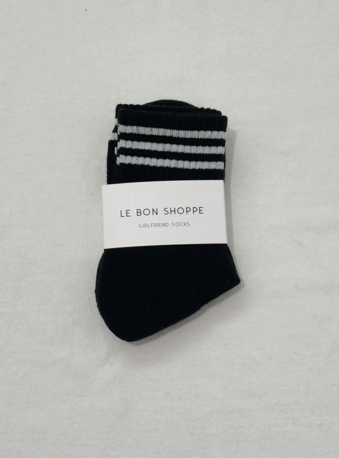 The Girlfriend Socks is the cool crew version of the original bestseller and classic Boyfriend Socks. These beauties feature a triple contrast stripe at the opening and a shorter classic crew sock length. She is a universally quintessential sock and especially flattering for our petite ladies.