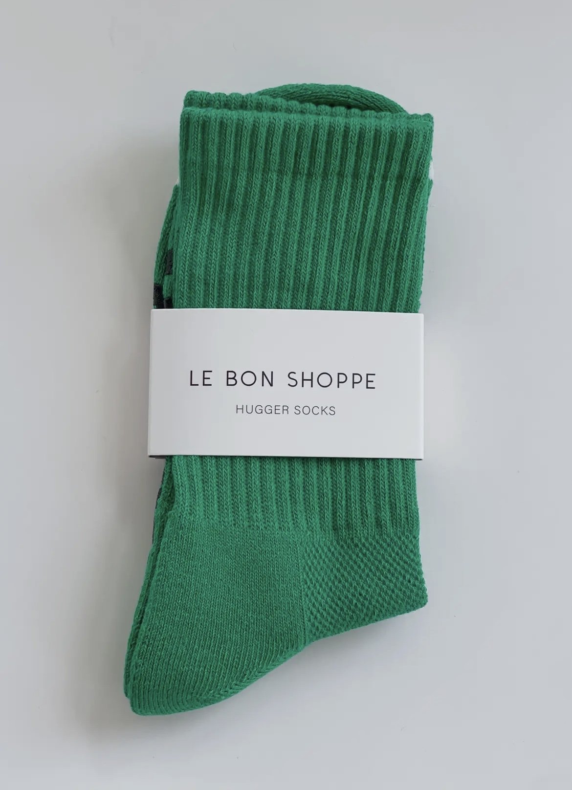 The introvert with a bubbly personality. Say hi to the Hugger Socks. Built on the same classic crew-length base as the Boyfriend Socks, with a clean, solid leg and a playful surprise underneath. A silicone motif on the sole adds a light grip, perfect for hugging flats, clogs, and slides.