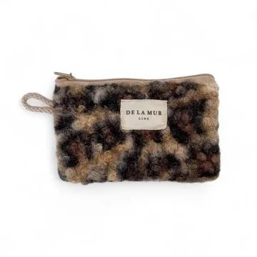 Zippered small purse with a small beige handle on the side. Made of thick plain beige jacquard fabric. Each item may have a variation in the print, depending on where the piece was cut. Lined with thick gray fabric on the inside. For proper maintenance, it is recommended to wash it by hand in cold water and not use a dryer.