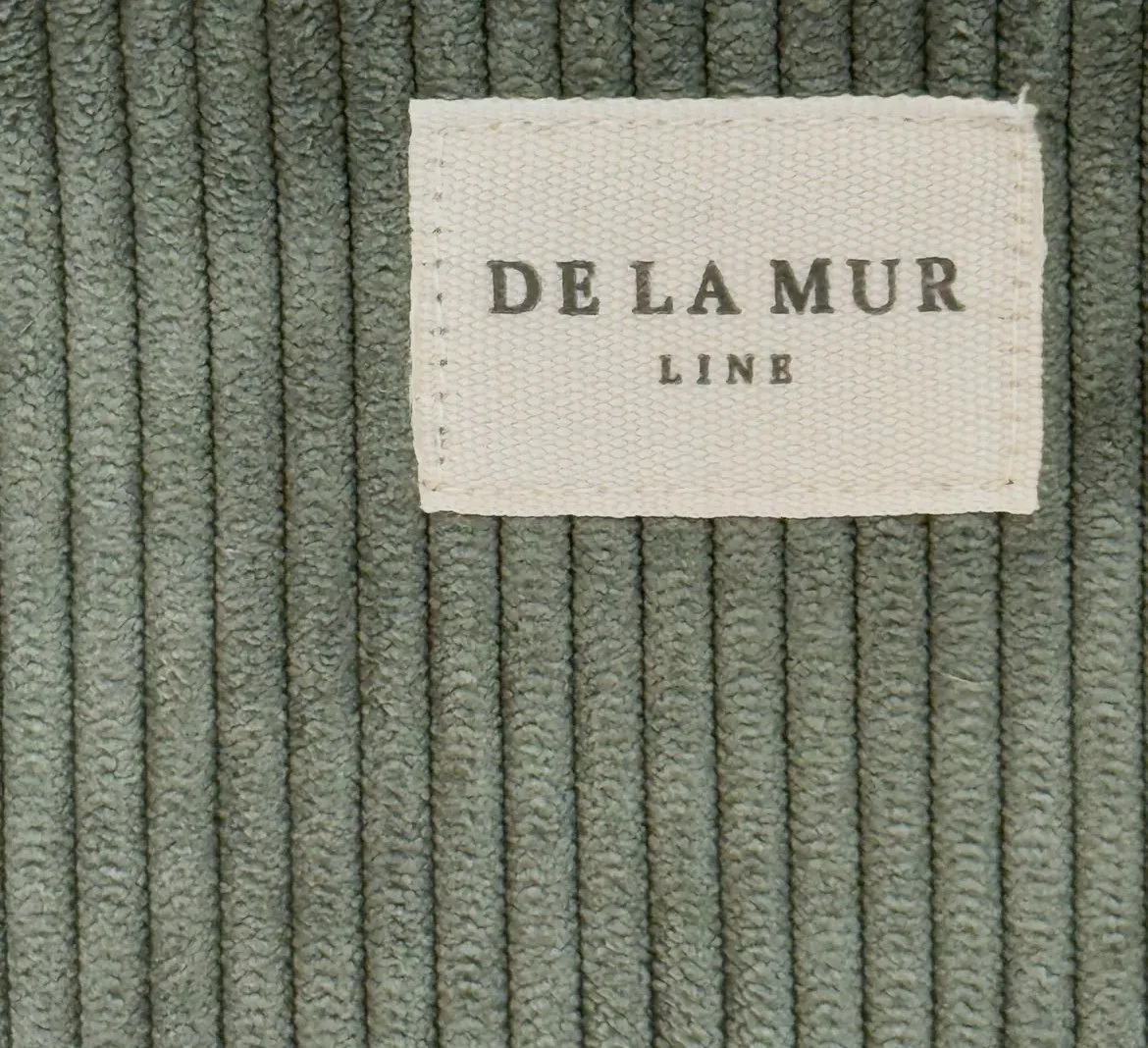 A purse with a zipper at the top and a small black cord handle on the side. Made of thick green corduroy fabric. Each item may have a variation in the pattern, depending on where the piece was cut. Lined with a thick gray fabric on the inside. For proper care, we recommend hand washing in cold water and not using a dryer.