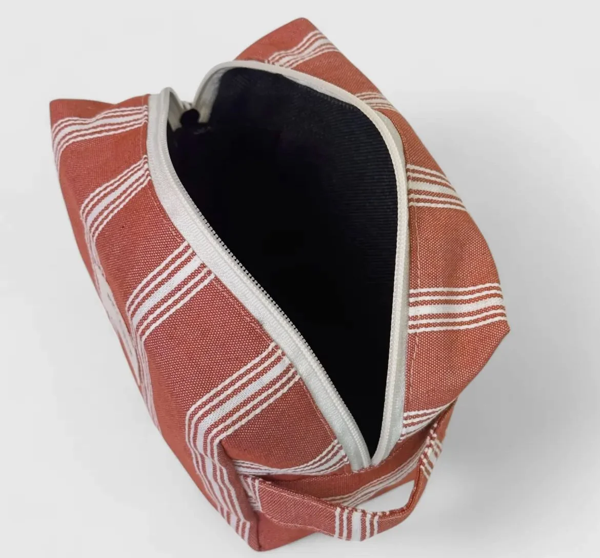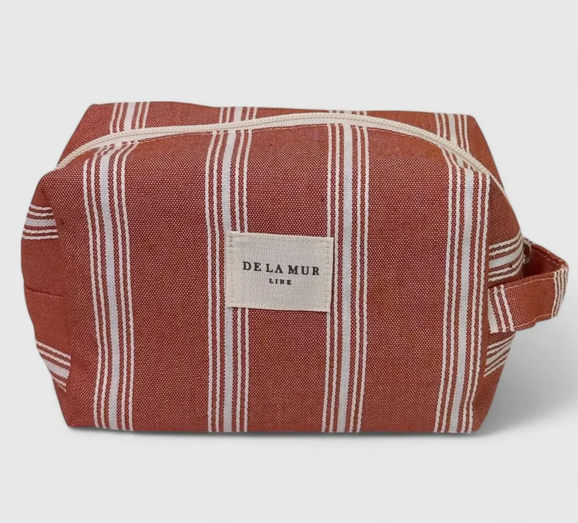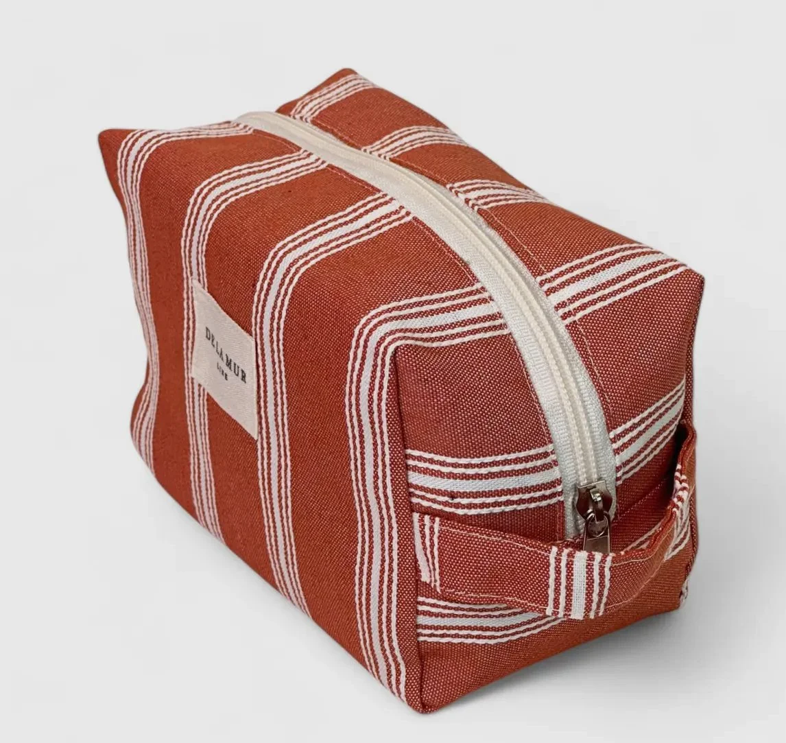 Small bag with zip on the top and with side handle. With a green fabric with toile de jouy print. For proper maintenance, it is advisable to wash it in the cold and not to use a dryer.