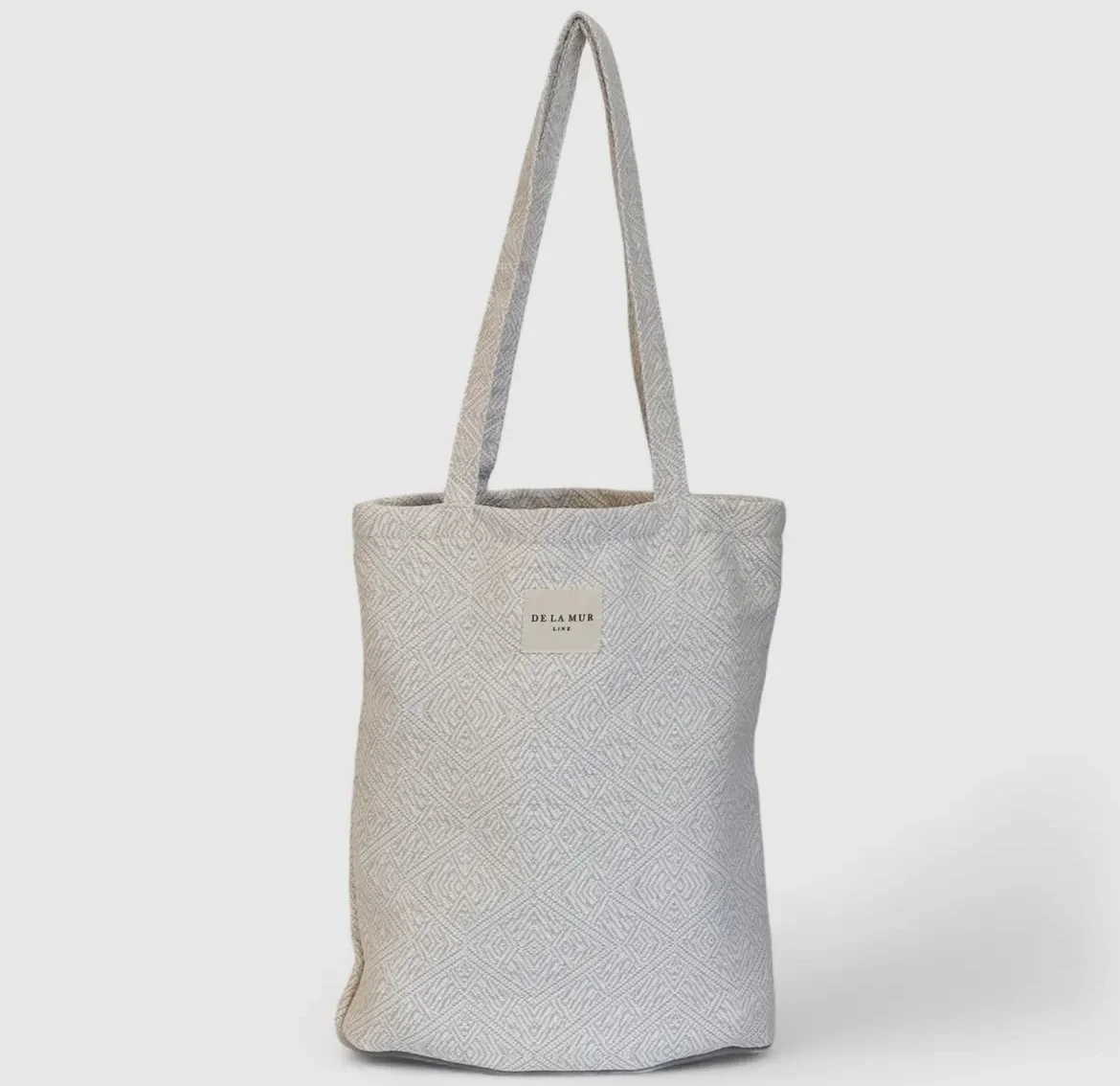 “Tote bag” with shoulder straps. Made of thick jacquard fabric with a raw coloured geometric print. For proper maintenance, it is advisable to wash it in the cold and not to use a dryer.
